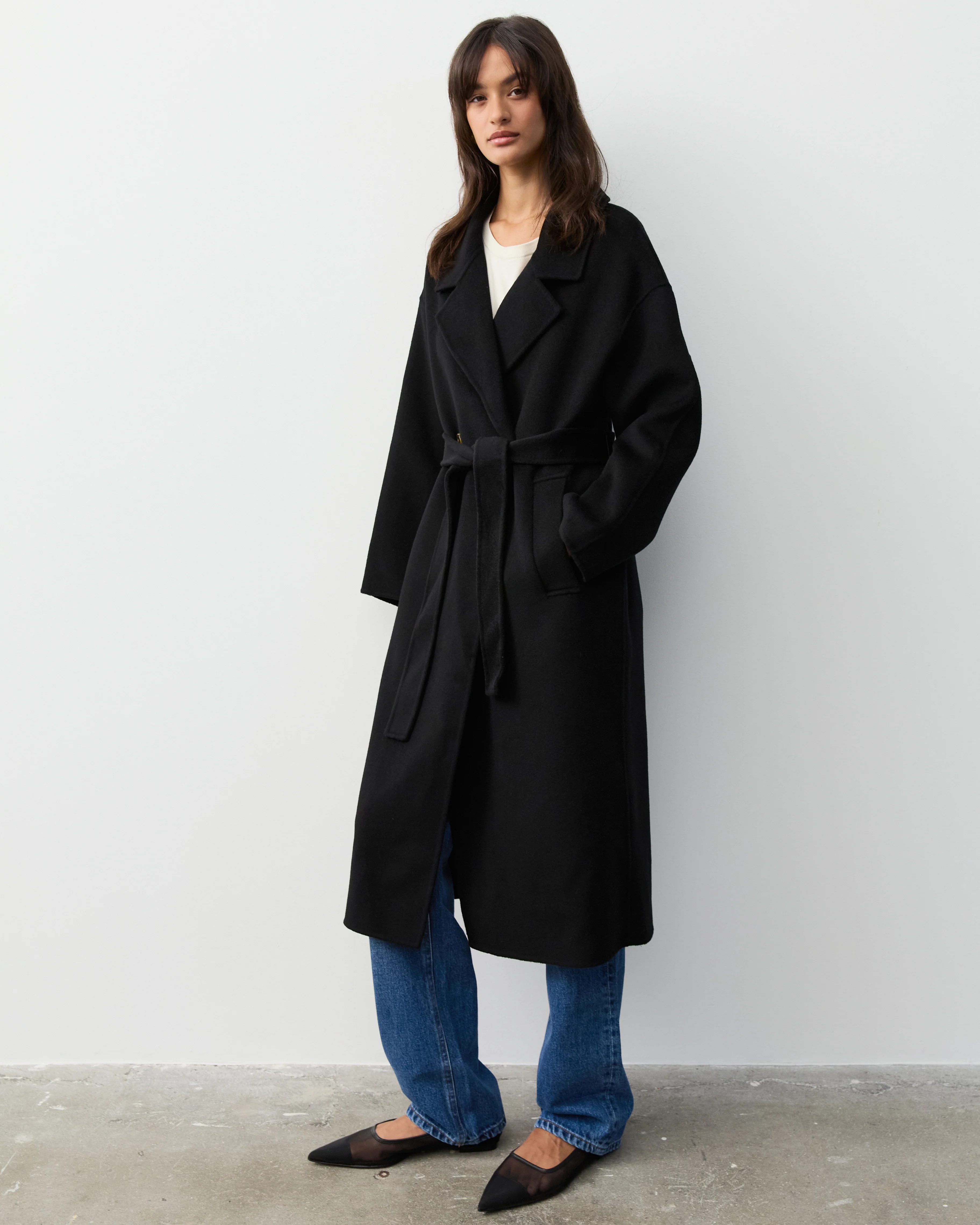 We've created the perfect oversized coat. With drop sleeves, box cut with two side pockets this is the perfect coat to keep you warm. Super soft with cashmere and wool blended it's cosy yet not necessarily casual. Double faced to keep structure and a style you can throw over anything to achieve that effortlessly stylish look.